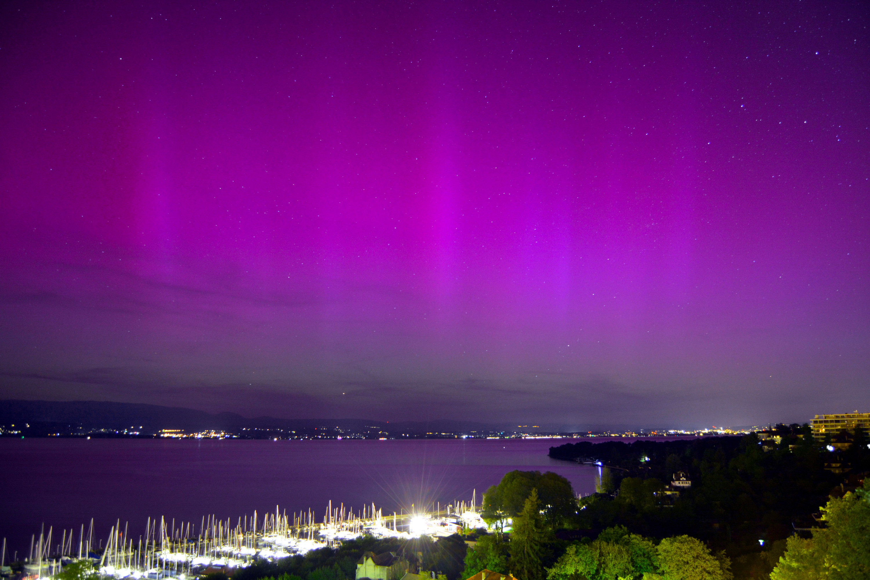 A Thonon, le phénomène qui pouvait être observé en regardant vers le nord est a illuminé le lac Léman de somptueuses teintes violettes.