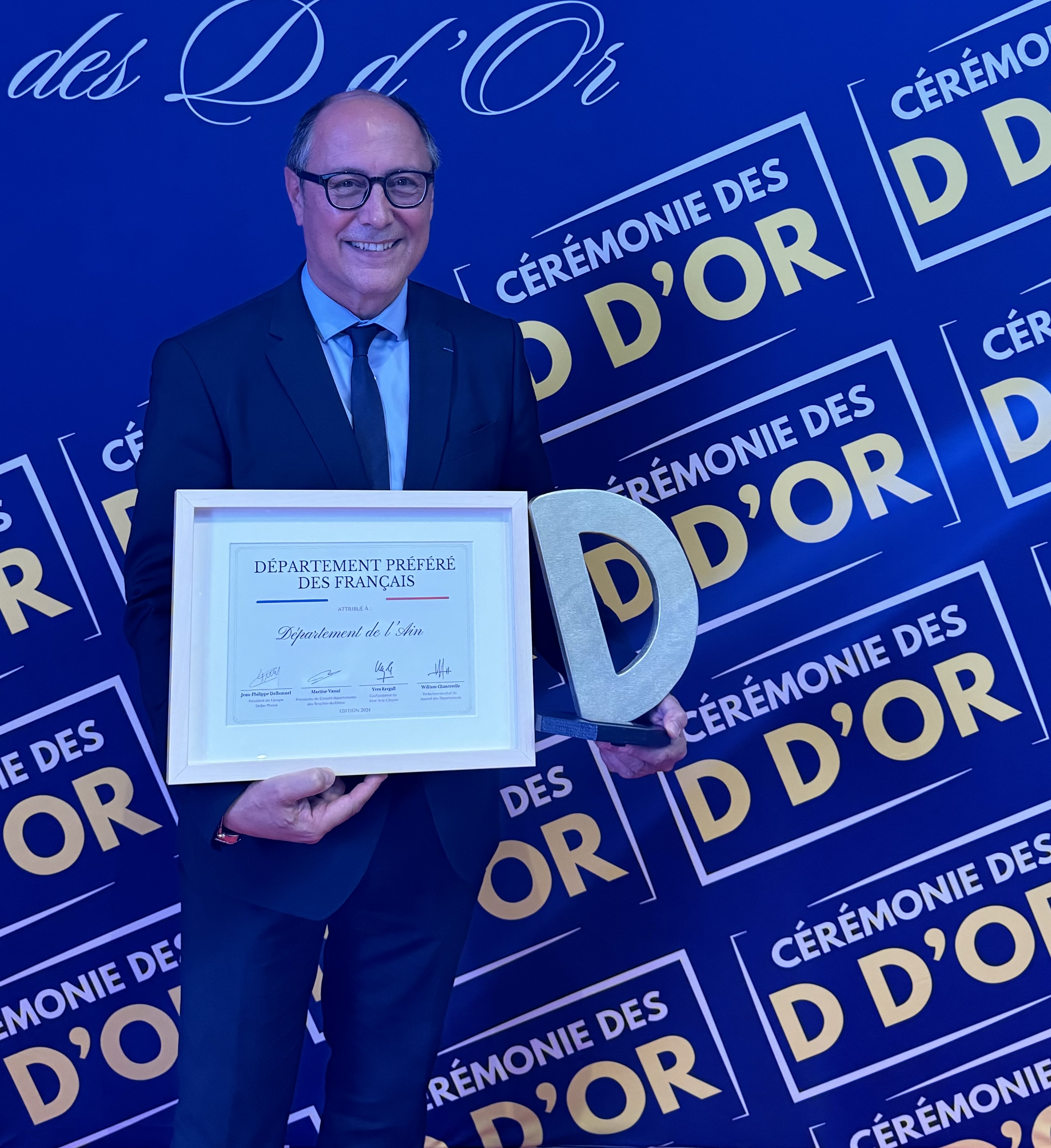 Jean Deguerry, le Président du Conseil départemental de l'Ain a reçu le prix « D d’Or du Public ». Les Aindinois ont largement voté et relayé leur fierté de vivre dans le département, notamment en publiant les photos de beaux paysages, en partageant les publications sur les réseaux sociaux ou en déployant leurs drapeaux bleus et jaunes.