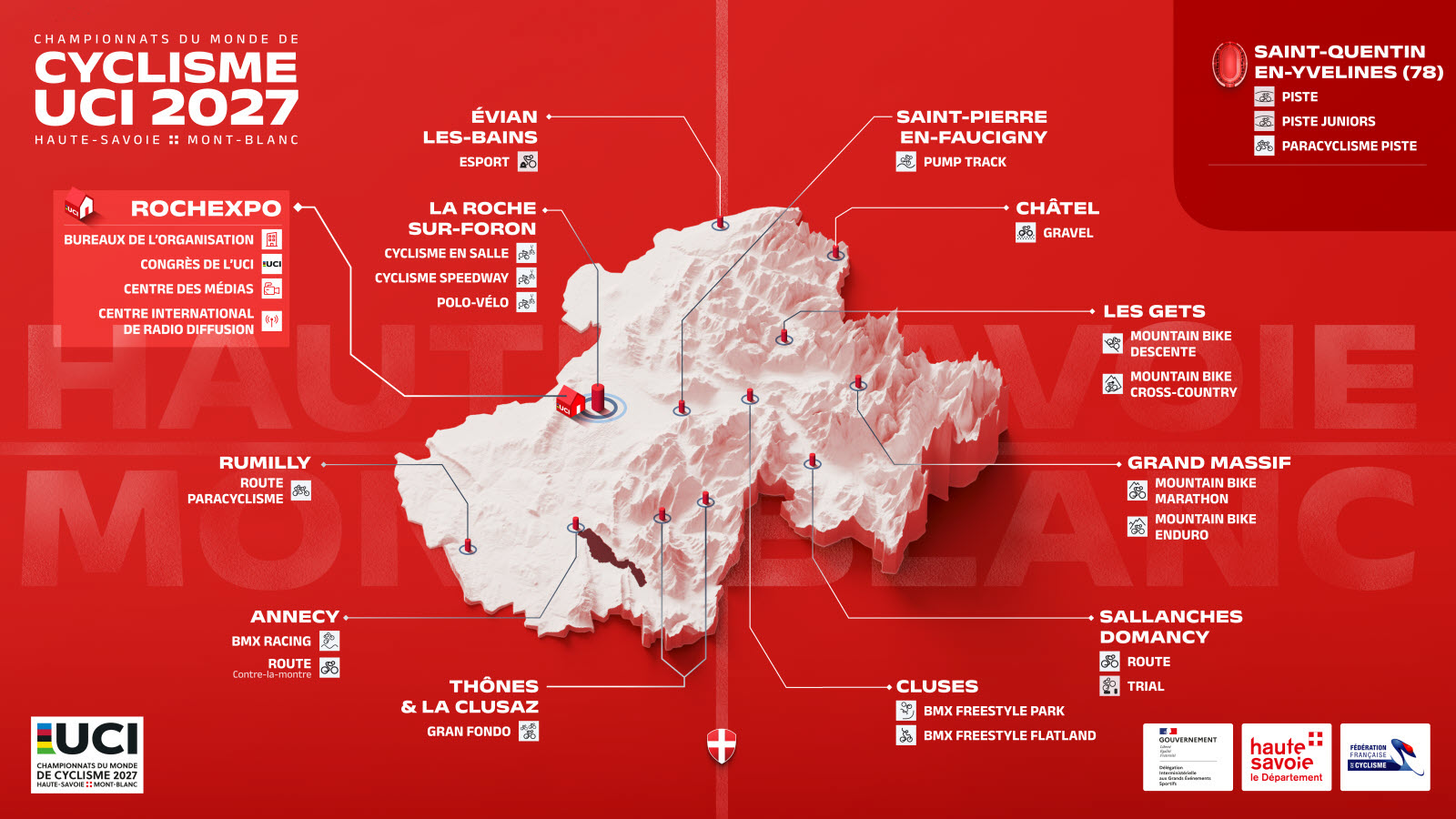 David LAPPARTIENT, Président de l’UCI : « Ces Championnats du Monde de Cyclisme UCI combinés faisaient partie de ma vision lorsque j’ai été élu Président de l’UCI en 2017. Cette vision est devenue réalité en 2023 à Glasgow et à travers l’Écosse, et nous nous appuyons désormais sur ce que nous avons créé en Écosse, dans un éventail encore plus large de spécialités cyclistes. Je me réjouis que cette édition se déroule en Haute-Savoie, terre d’accueil reconnue d’événements UCI dans plusieurs disciplines. Le cyclisme y sera célébré dans toute sa splendeur. »