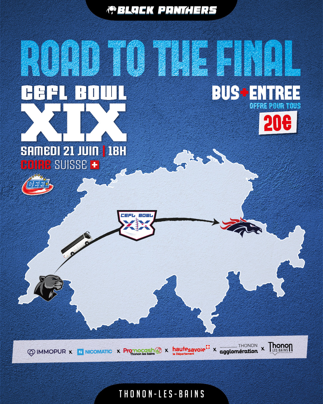 Partenaires de la Radio Plus, les Chablaisiens sont à 2 matches d'une saison historique, qui pourrait être marquée par un doublé. En cas de victoire en finale nationale, les Black Panthers réussiraient l'exploit de s'imposer pour la 3ème année consécutive!