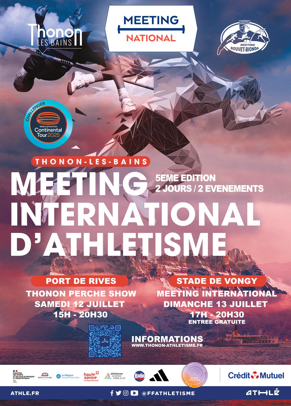 Samedi 12 juillet, dès 11h, c'est au bord du Léman, au port de Thonon, qu'aura lieu un grand concours de saut à la perche qui réunira les meilleurs athlètes français, et des compétiteurs étrangers. De 11h à 15h, ce sera d'abord un concours régional, puis de 15h à 18h, les élites femmes seront en piste. Enfin, de 18h30 à 20h30, les élites hommes s'élanceront sur le sautoir du port de Rives.