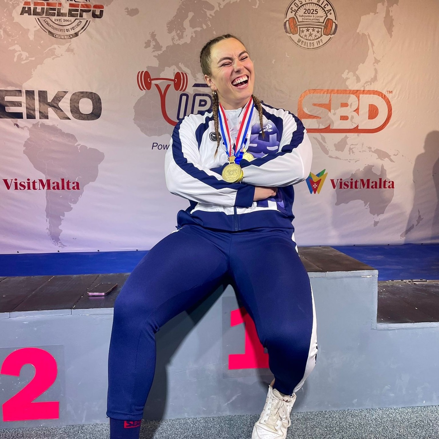 Engagée dans la catégorie juniors moins de 84 kilogrammes, elle s'est imposée et est devenue championne du monde pour la première fois de sa carrière.